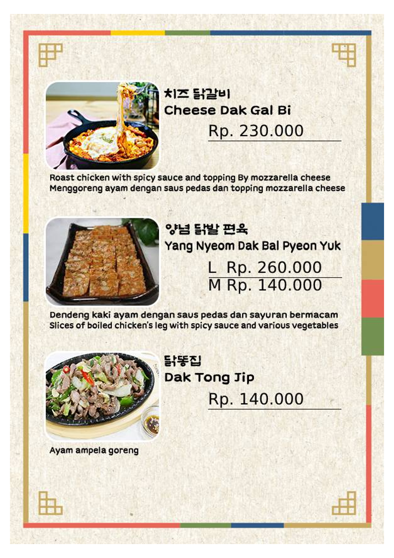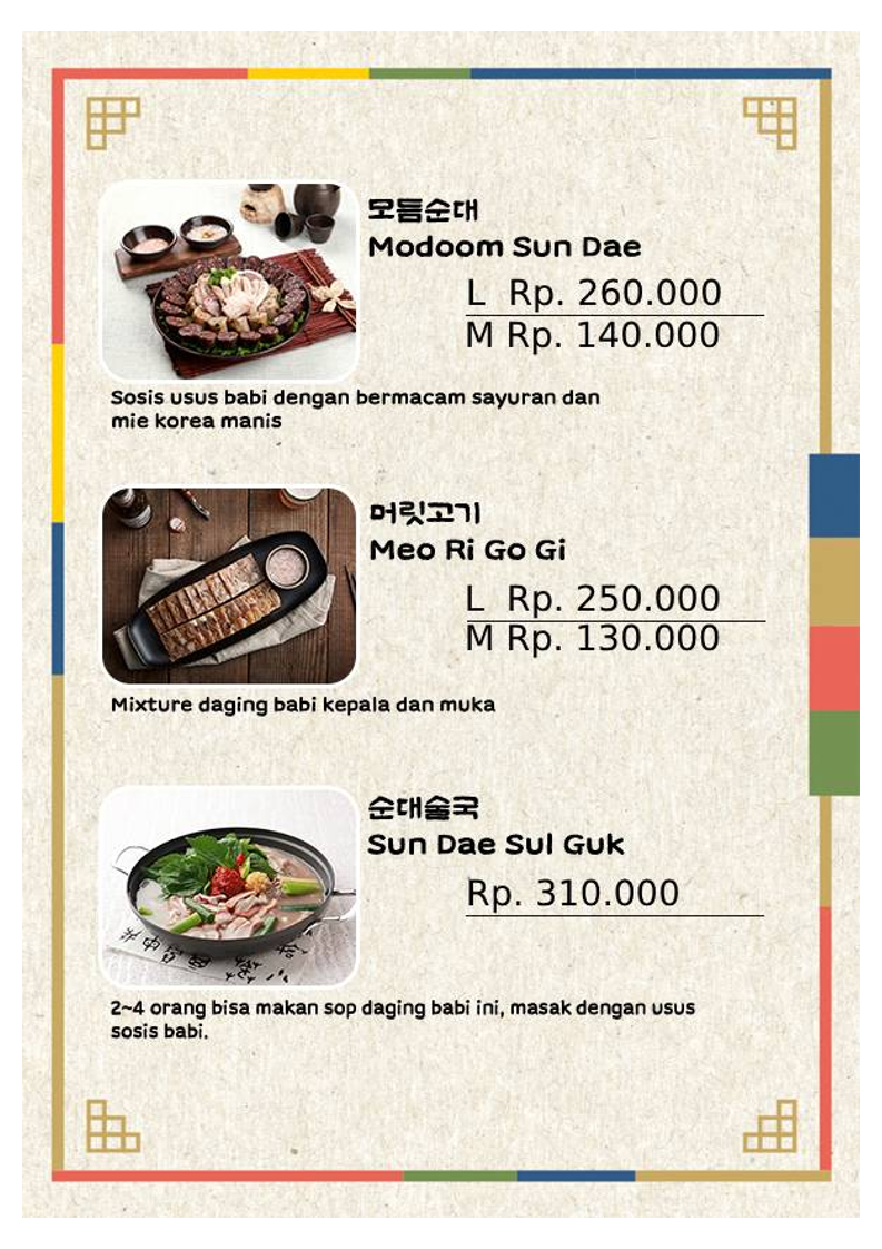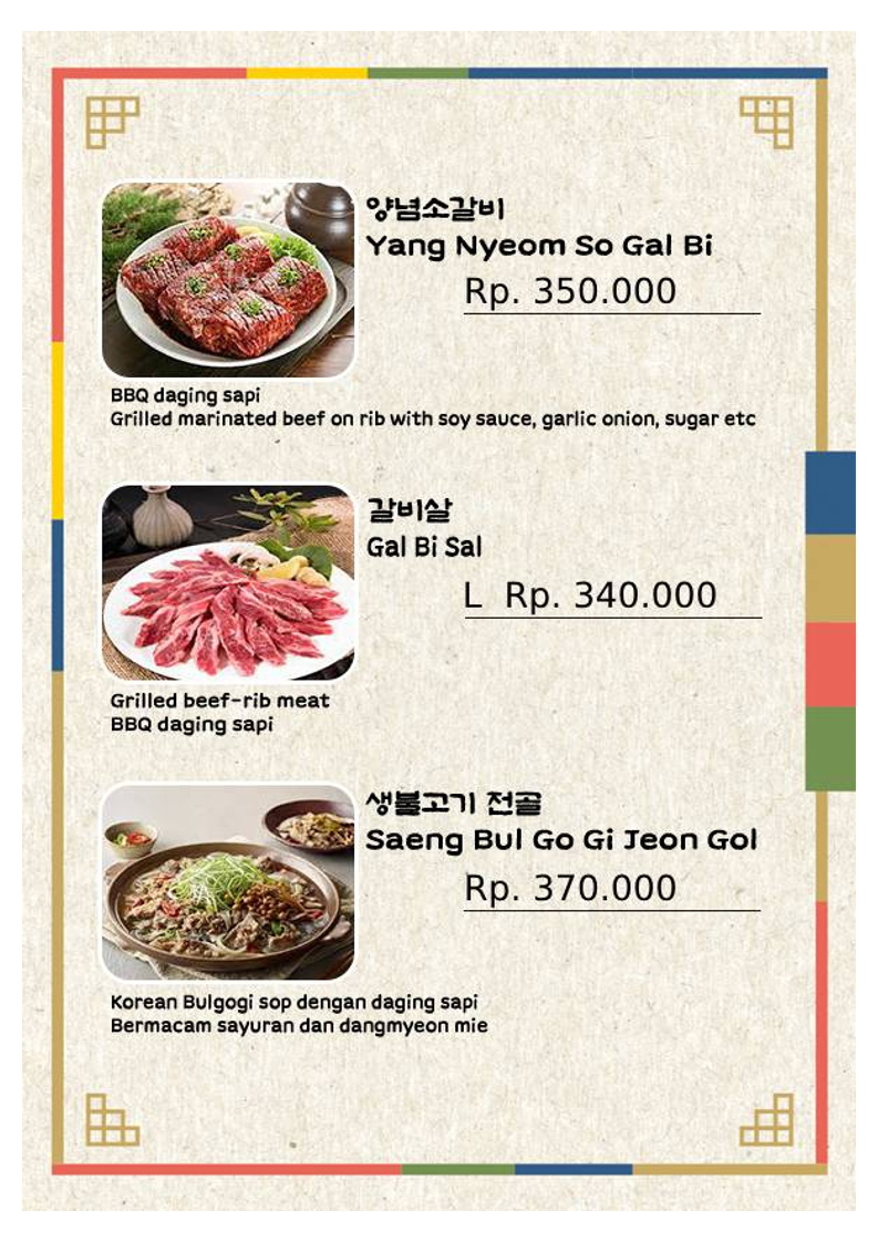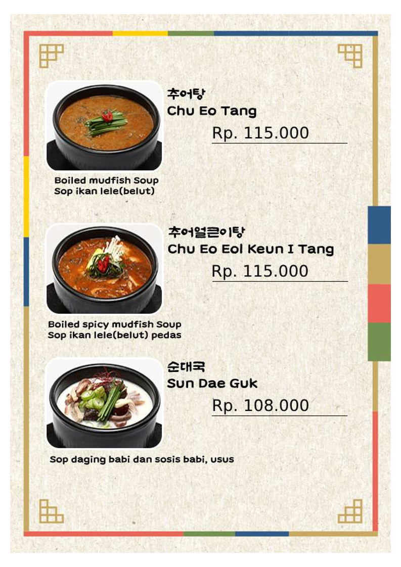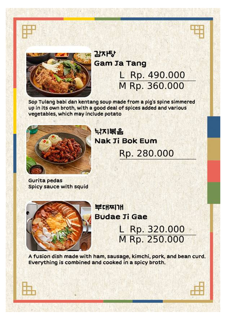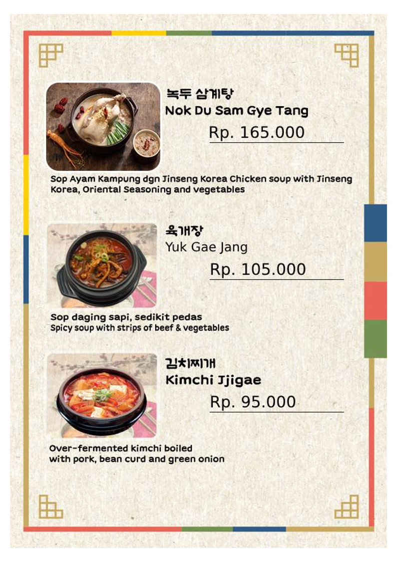 If you're looking for an authentic Korean dining experience, Seorak Chuoetang Resto Korea Menu is the place to be. Located at 18, Jl. Boulevard Bar. Raya No.6A in Kelapa Gading, North Jakarta, this cozy spot offers a menu full of bold flavors and rich textures. Whether you’re craving a comforting bowl of Korean stew, sizzling BBQ, or delicate side dishes, there’s something here for everyone.