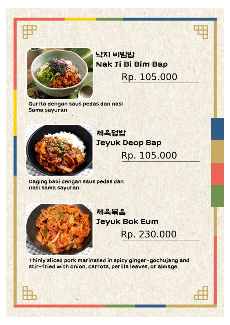 The warm, welcoming atmosphere makes it an ideal spot for casual dining with friends or family. With each dish thoughtfully prepared, it’s no surprise that Seorak Chuoetang has become a go-to for those looking to explore the flavors of Korea right in the heart of Jakarta.